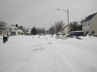February 17th 2003 - Blizzard hits Eastern Mid-Atlantic States. We get 25 inches total, with drifts as high as 3"ft. Well I've been askin for it for sometime now. I wanted this, I needed this. (I must confess to being a snow junkie!) This 25 inches of pure white happiness dumped right at my doorstep. Brought the neighborhood together and we all chipped in to help each other dig out of it. With our neighbors and us, we had three gas-powered snow blowers and about seven snow shovelers. Took us most of the day to dig out our entire street, but we finished it...Ahhhh! now its time for some home made bean soup and fresh Italian bread! |
